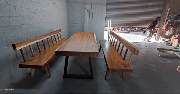 Acacia wood dining table with long bench, beautiful and suitable for every space 🍴